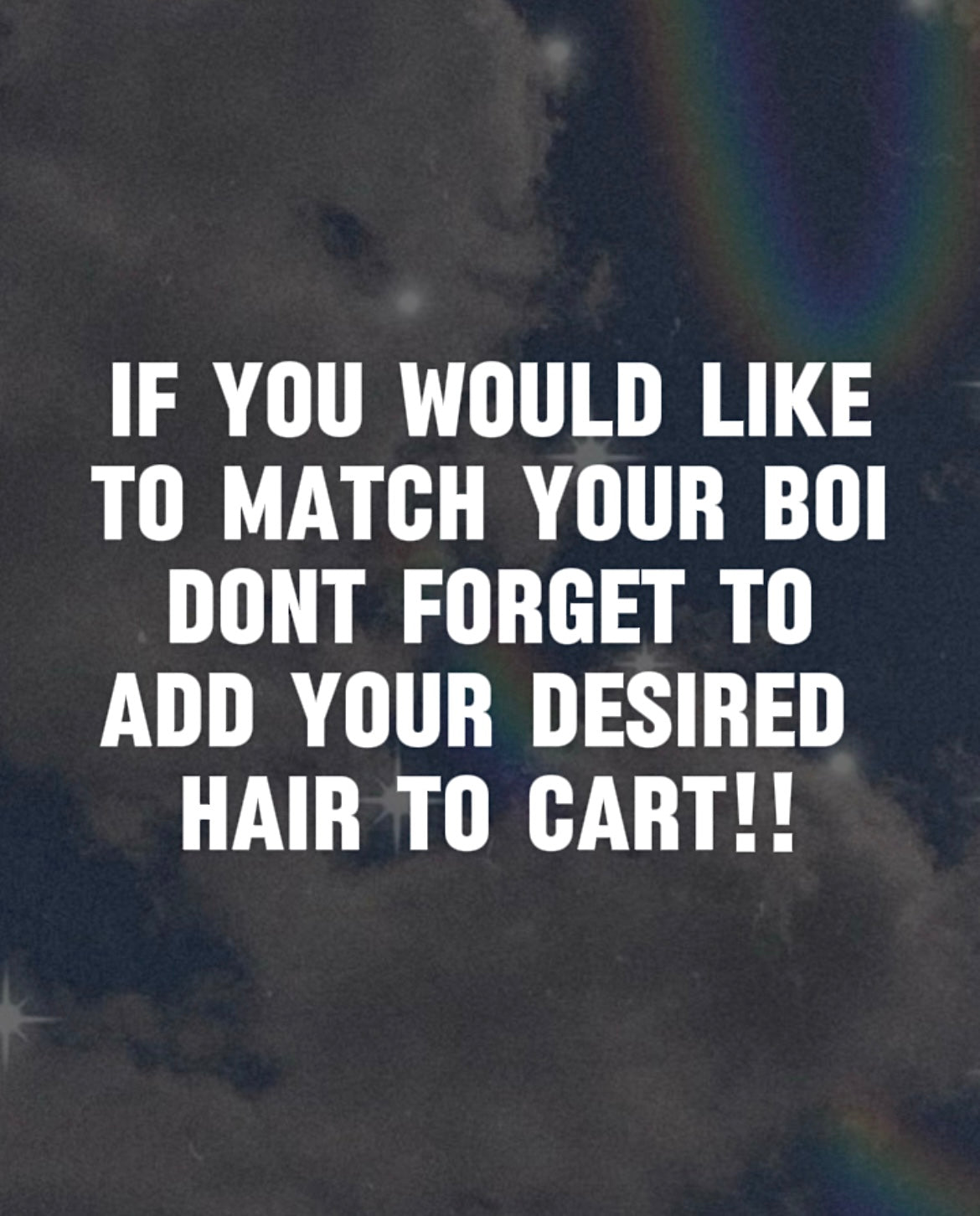 IF YOU WOULD LIKE TO MATCH YOUR BOI DONT FORGET TO ADD YOUR DESIRED HAIR TO CART!!