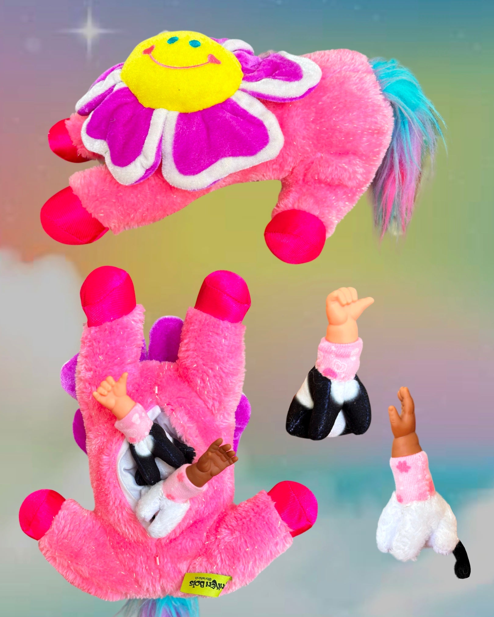 - Flower head on dog body, puppies are panda and cat with baby limbs for heads