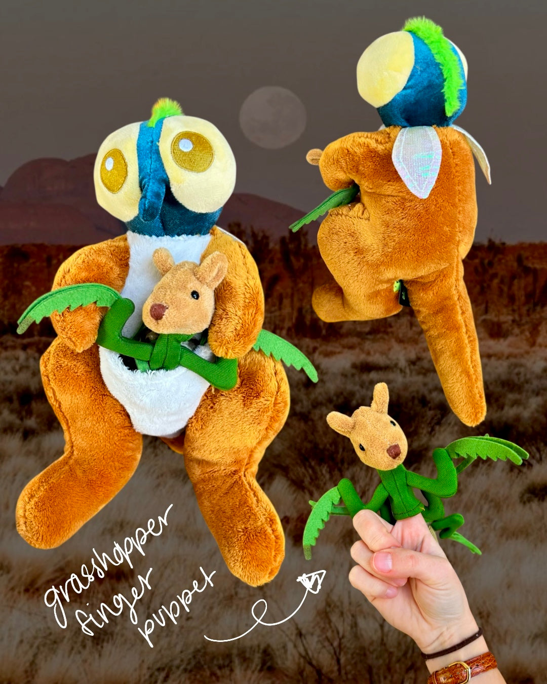 - Fly head on kangaroo body, kangaroo grasshopper FINGER PUPPET buddy